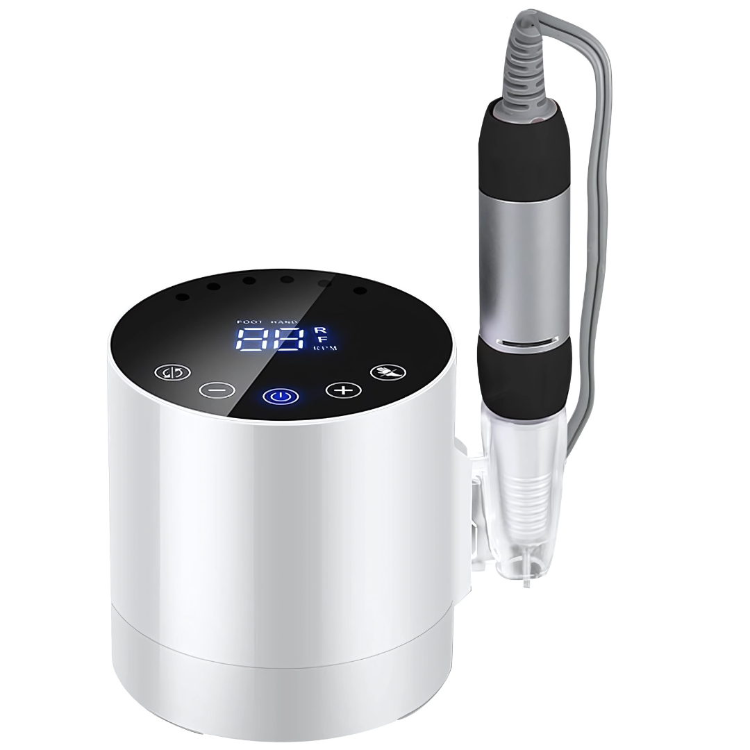 Deze elektrische nagelvijl is voorzien van een voetpedaal, zodat je altijd een hand vrij hebt tijdens het werken. Het intuïtieve LCD-touchscreen toont snelheid en instellingen in één oogopslag, wat het gebruik nog eenvoudiger maakt. Dankzij de instelbare draairichting werk je comfortabel vanuit elke hoek, zonder onnatuurlijke handposities.