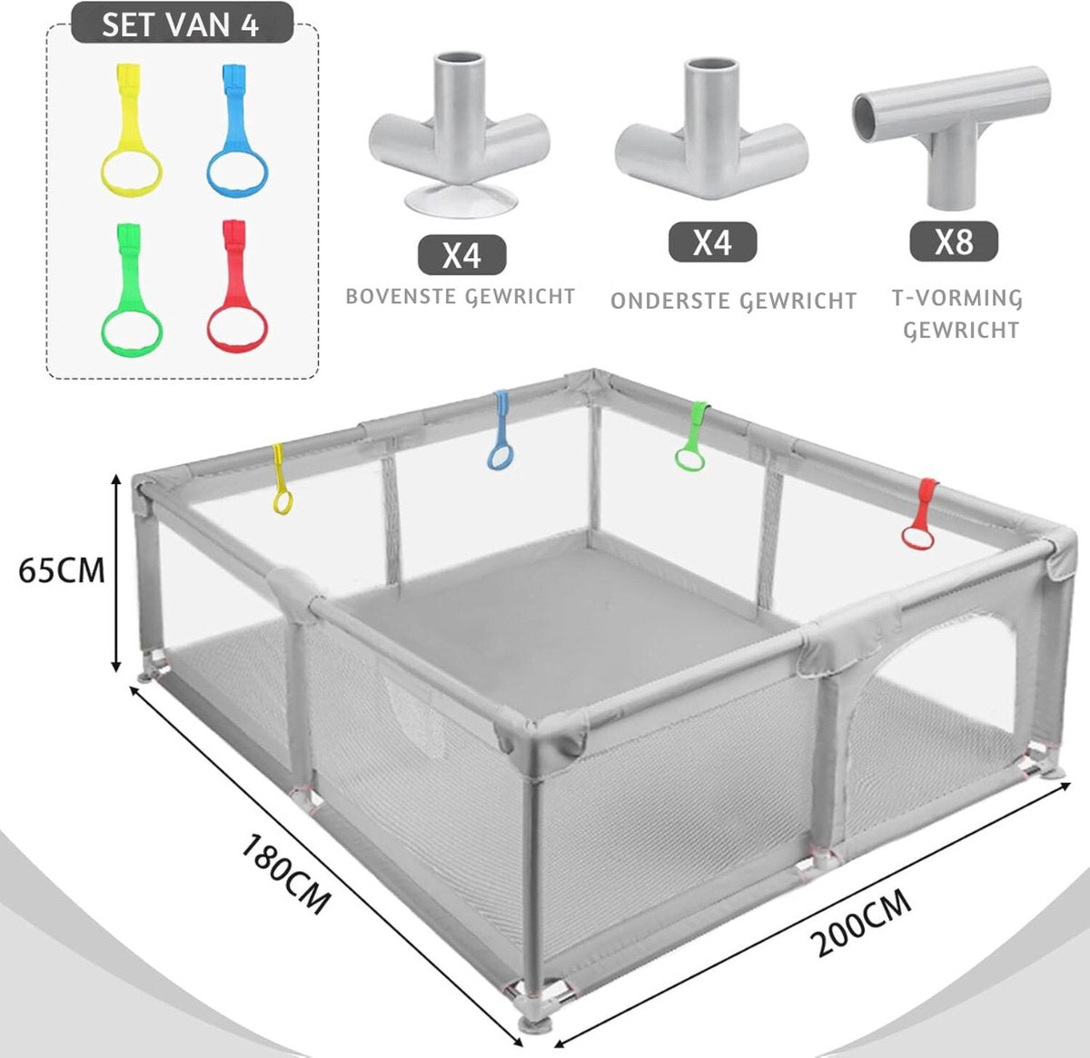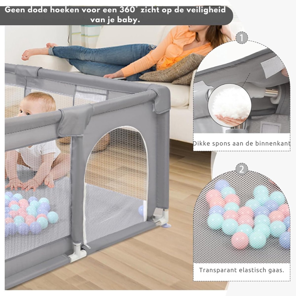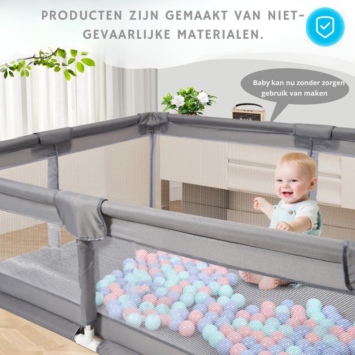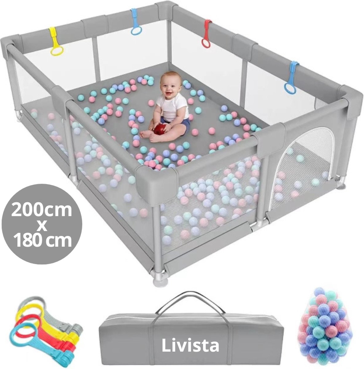 Livista Grondbox - Speelbox - Baby boxen - Kruipbox voor Baby - Playpen - Kinderbox - Met 60x Oceaan Ballen - Met trekring - 200 x 180 x 65cm - Grijs