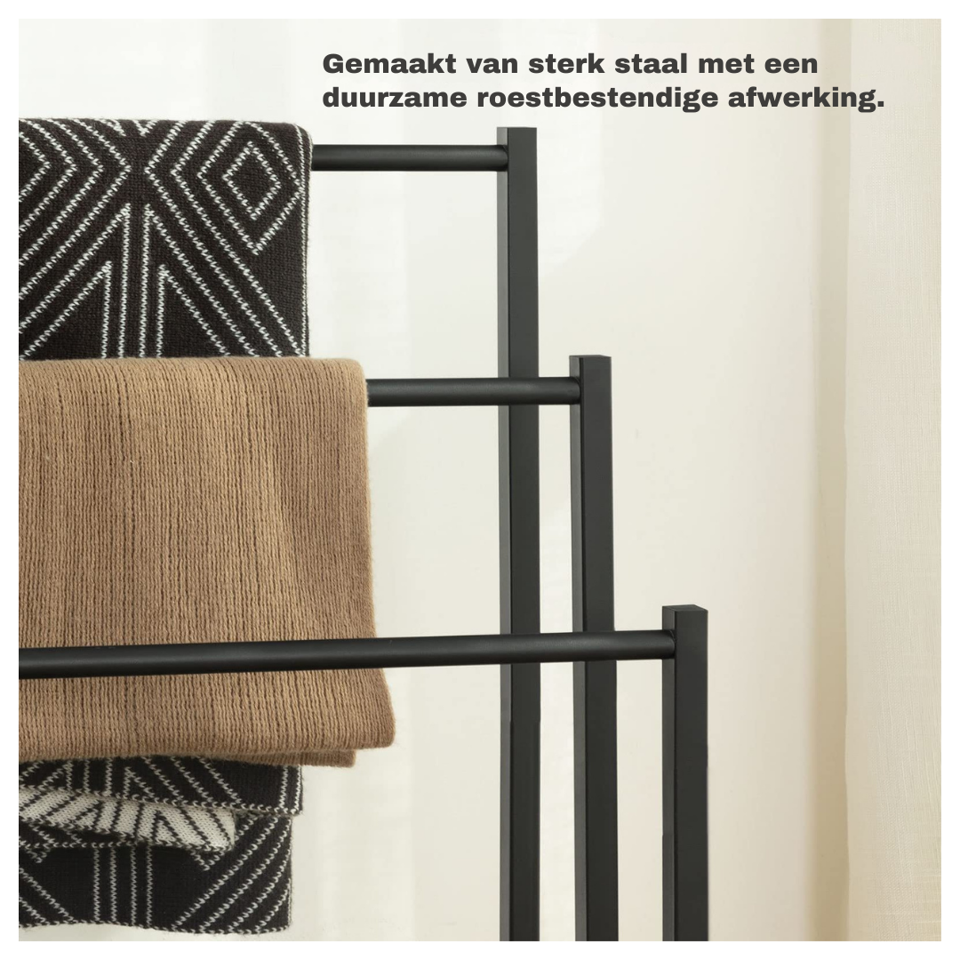 - Duurzaam en stevig: Het hoogwaardige metalen frame is bestand tegen vocht en roest, zodat je handdoeken veilig blijven hangen.