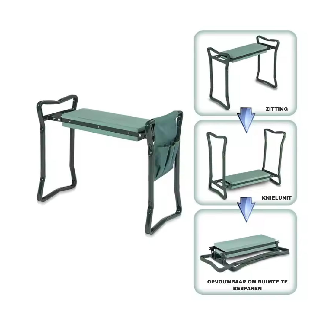 - 2-in-1 ontwerp – Gebruik hem als kniesteun of klap hem eenvoudig om tot een stevig zitbankje.