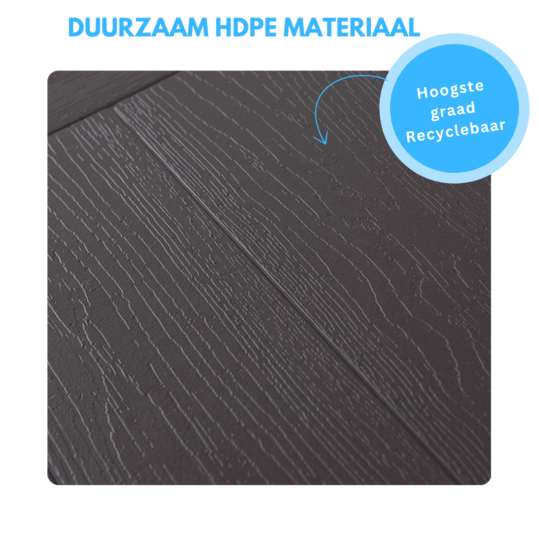 🌿 Duurzaam HDPE-materiaal: Hoogste graad recyclebaar kunststof, weerbestendig en onderhoudsvriendelijk.