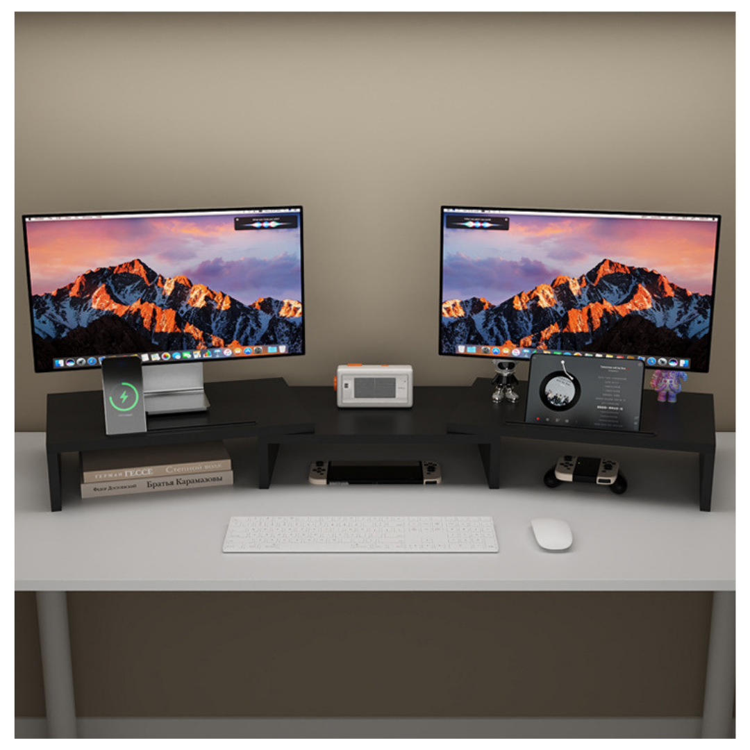 Werk comfortabeler en georganiseerder met de Livista monitorstandaard. Deze stevige standaard is gemaakt van 15 mm dik samengesteld plaatmateriaal en is ideaal voor het ondersteunen van één of twee monitoren, laptops, printers of speakers.