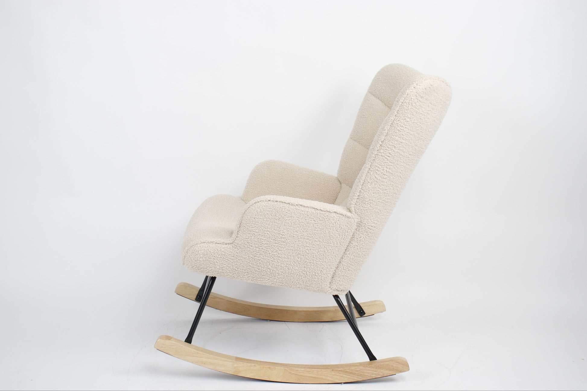 Livista Schommelstoel - Relaxstoel - Fauteuil - Schommelstoel Babykamer - Voedingsstoel - Schommelstoel Volwassen Baby - Teddy Stof - Roomwit Beige