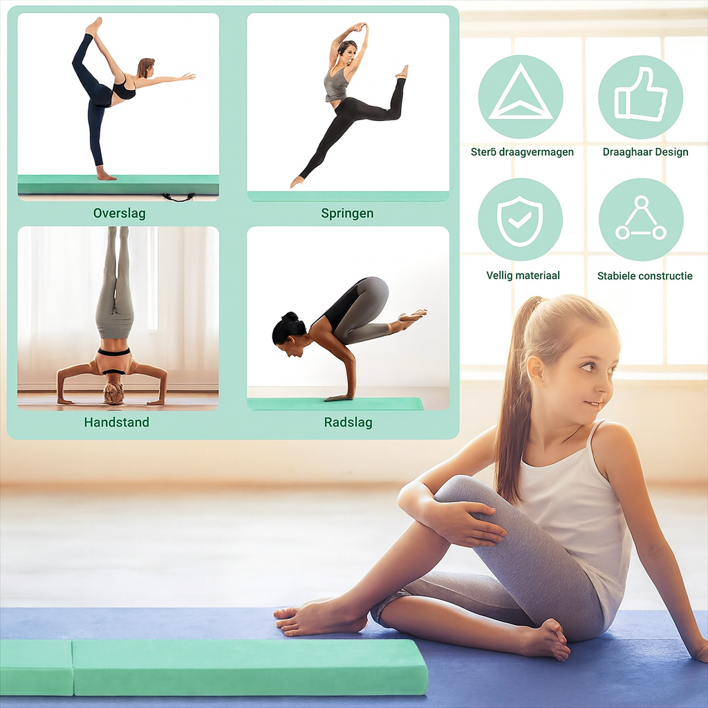 Livista Turnbalk - Voor thuis - Evenwichtsbalk - Balanstrainer - Balans speelgoed - Mintgroen - 240 cm - Incl. draagtas - Thuis Turnen