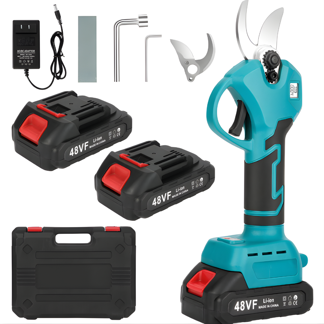 Maak snoeien sneller, krachtiger en moeiteloos met deze professionele Elektrische Snoeischaar 48VF. Dankzij de borstelloze motor, 2 krachtige 21V 2000mAh lithiumaccu’s en instelbare snoeidiameter (25 mm & 40 mm) is dit de ultieme snoeischaar voor iedereen die efficiënt en zonder pijnlijke handen wil werken.